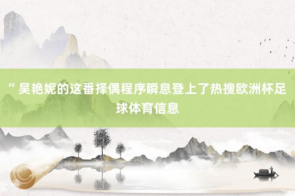 ”吴艳妮的这番择偶程序瞬息登上了热搜欧洲杯足球体育信息