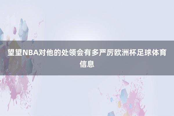 望望NBA对他的处领会有多严厉欧洲杯足球体育信息
