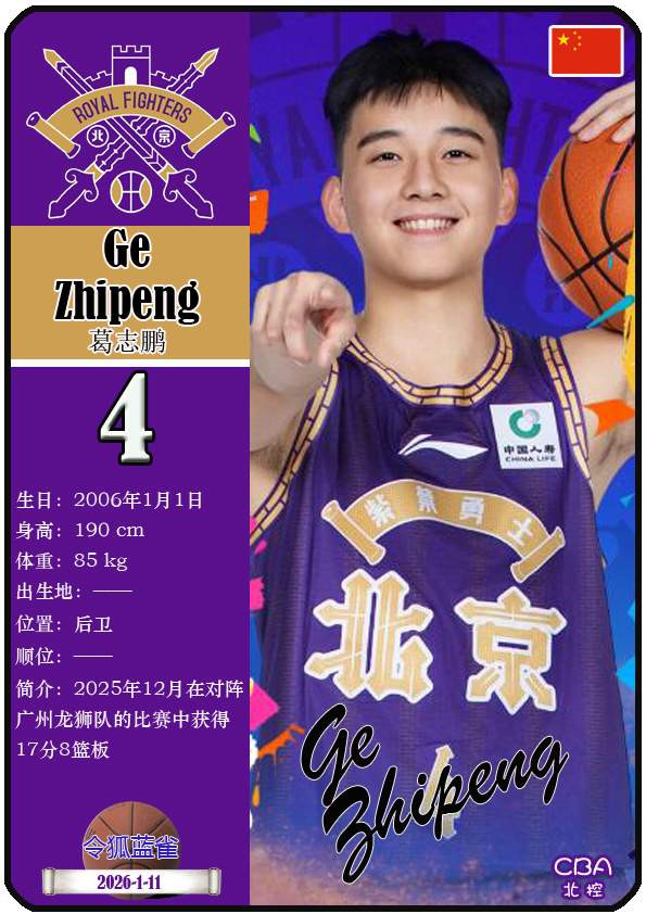CBA北控队前身可追念至诞生于2009年4月27日的广州开脱东说念主篮球俱乐部,距今已有17年历史。死心2026年1月11日,球队主莳植是张庆鹏,队内领有球员格兰特-里勒、雷吉-佩里、廖三宁等。本期盘货现在CBA北控队的21名球员(按球衣号码排序):