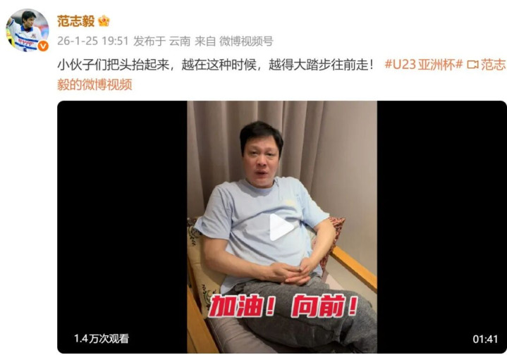 北京时分1月25日凌晨,中国U23男足0比4不敌日本,获取2026年U23亚洲杯亚军。足球通顺员范志毅发视频荧惑U23男足:“小伙子们把头抬起来,越在这种技能,越得大踏步往前走!罗致这个事实,然而你得咬着咬挺过这一关,加油!”